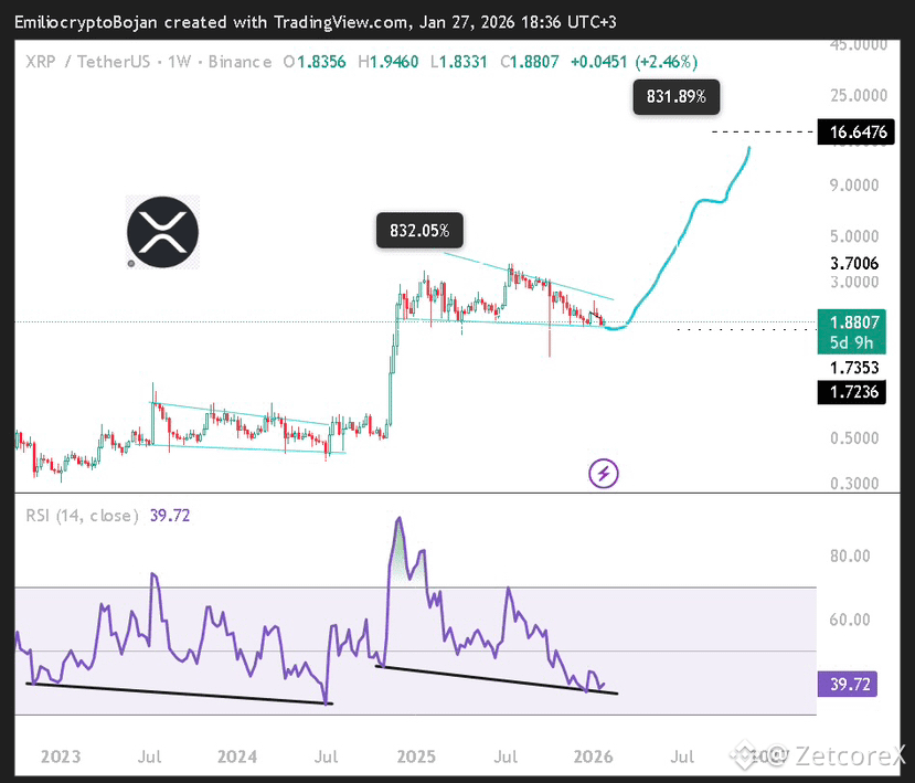 Ripple’s $XRP has confirmed a hidden bullish divergence, a signal that has historically preceded major expansion phases. After past consolidation periods, price has repeatedly delivered 800%+ upside moves.