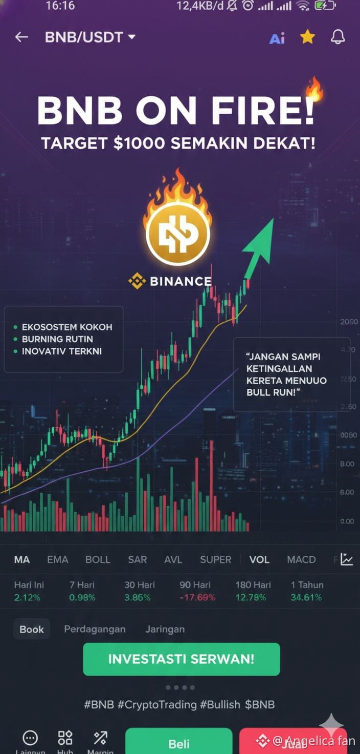 Liat chart-nya? BNB baru aja break resistance dan stabil di atas $905! Dengan ekosistem raksasa & burning rutin, BNB bukan cuma koin, tapi aset masa depan. Jangan sampai ketinggalan kereta sebelum menuju $1000! 🚀