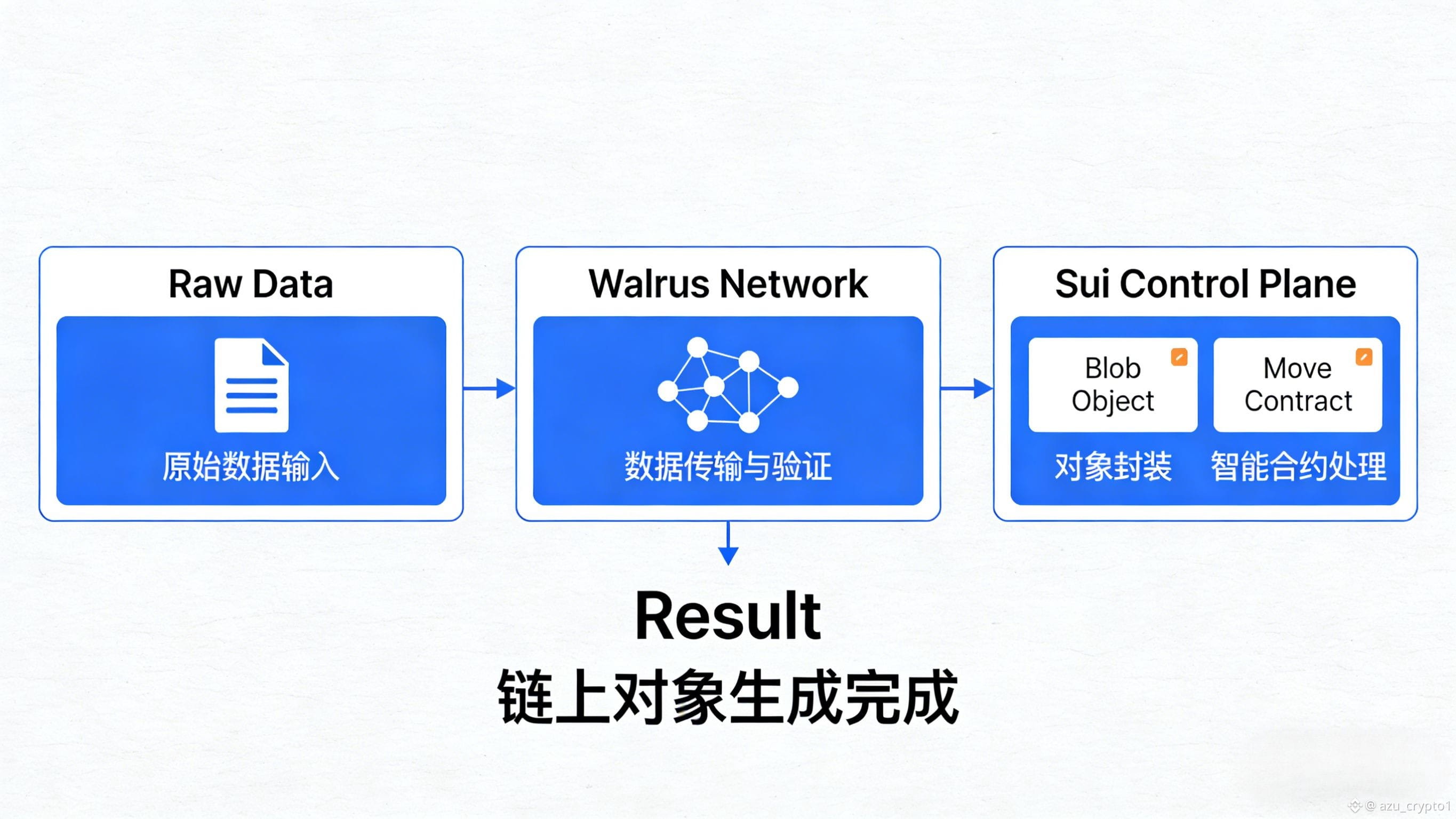 所以我更愿意把 Walrus 理解成“可编程数据底座”,而不是“便宜存储盘”。这也是它和传统存储项目最大的分野:它不是帮你在某条链上塞个文件哈希了事,而是把每一个存进去的大文件(blob),在 Sui 上变成一个可以被 Move 智能合约直接操作的对象。换句话说,你在 Walrus 上存的不是“死文件”,而是可以被合约管理生命周期、计费、授权、拆分组合的“数据资产”。
