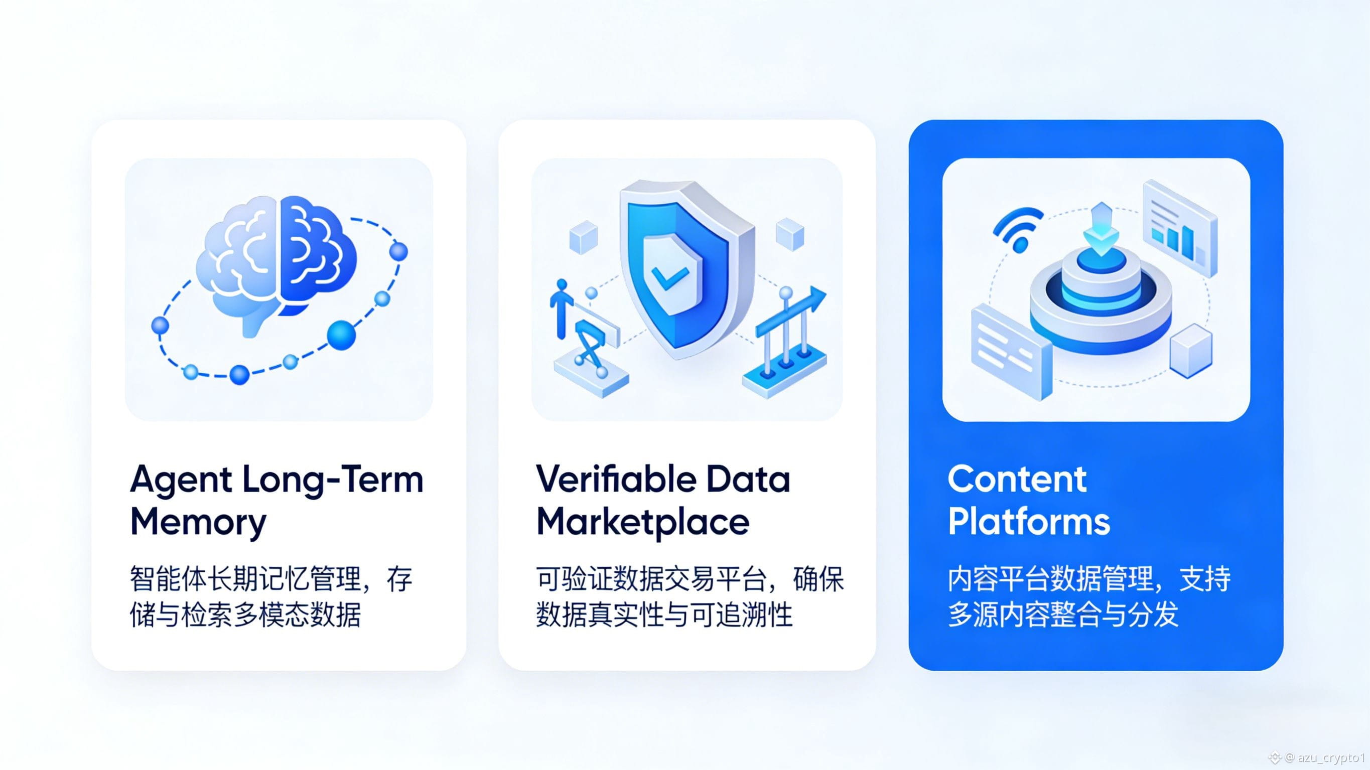 第一个是 AI agent 的“长时记忆”。现在大家用各种智能体,最大痛点之一就是“每次见面都要从头讲故事”:上下文记不了太久,换一个模型、换一个平台,之前的交互和数据基本是断档的。如果你用 Walrus 这套组合,你可以把 agent 的结构化记忆(分析结果、总结后的用户画像、偏好向量等)以及必要的原始片段,以 blob 的形式丢到 Walrus,然后在 Sui 上用 Move 合约维护一张“谁可以访问这些记忆、在什么条件下可以读写”的表。AI agent 自己可以通过合约接口调这些数据,不同 agent 之间也能够在明确授权和付费的前提下共享记忆,这就把“AI 的记忆层”从应用里拆出来,变成一个独立运作的数据资产层。