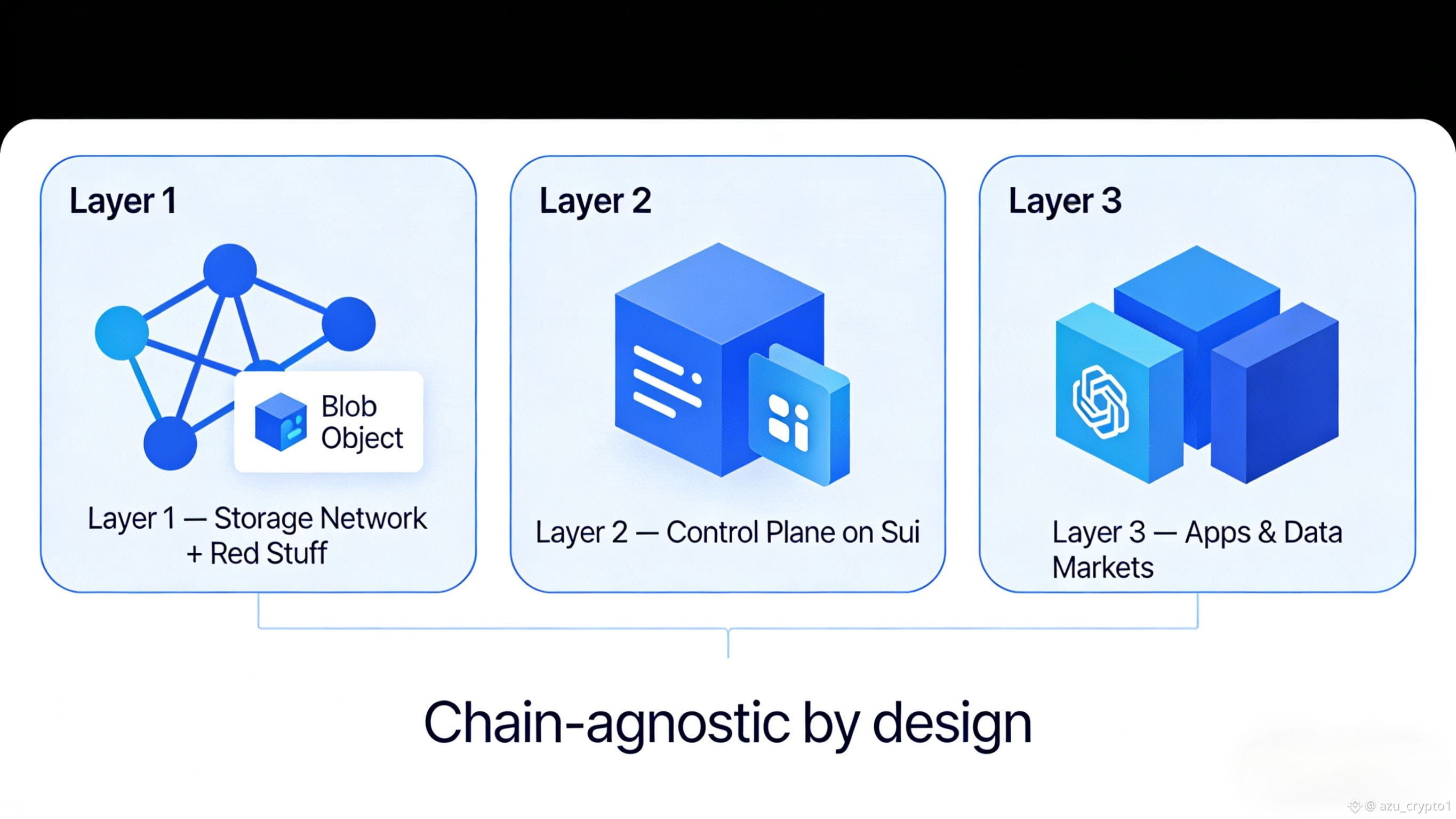 这里还有一个经常被忽略的点:Walrus 虽然用 Sui 做控制层,但它从第一天就设计成“chain-agnostic”。什么意思?简单说,就是只要你那条链上的应用愿意和 Walrus 的 SDK、工具链打交道,不管是 EVM、Solana 还是别的什么,都可以把 Walrus 当成自己的数据层,业务逻辑留在原生态,存储和数据管理丢给 Walrus。这一点在官方文档和生态介绍里写得很清楚:协调在 Sui 上做,但服务的对象是整个多链世界。