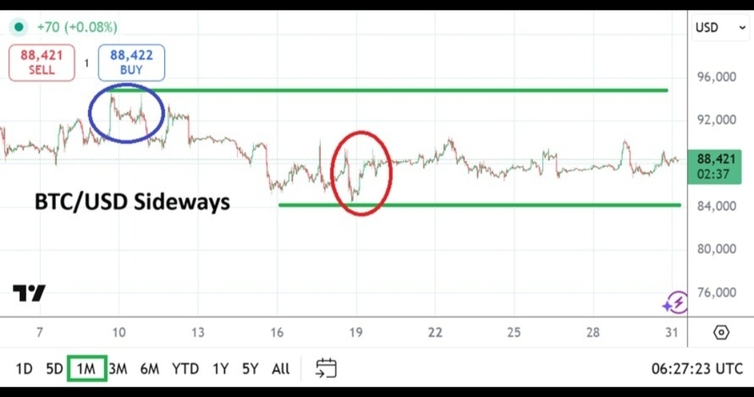 Interpretazione: BTC non è né in una chiara tendenza rialzista né in una profonda caduta ribassista — attualmente si sta consolidando, il che è tipico dopo un lungo rally. I trader stanno osservando attentamente i livelli chiave di supporto e resistenza.
