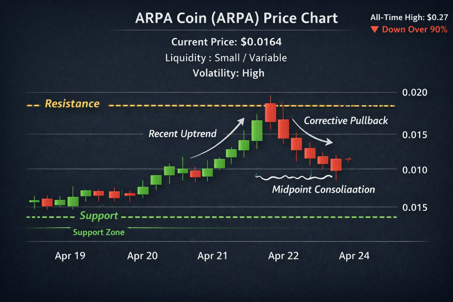 • Come molti token a bassa capitalizzazione, il prezzo di ARPA è altamente volatile e sensibile al sentimento di mercato e alle tendenze più ampie delle criptovalute. �