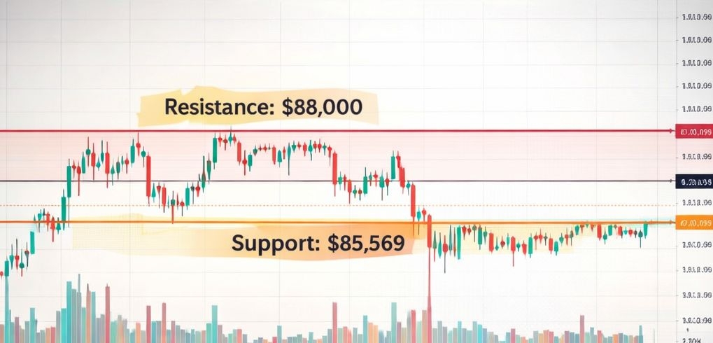 Da una prospettiva tecnica, Bitcoin ha recentemente chiuso al di sotto del punto medio di un canale orizzontale vicino a $87,787. Questo livello è ora diventato una zona di resistenza chiave. Se BTC non riesce a riprendere e mantenere sopra quest'area, il prezzo potrebbe muoversi verso il prossimo supporto maggiore intorno a $85,500, che si allinea con il livello di ritracciamento di Fibonacci del 78,6%.