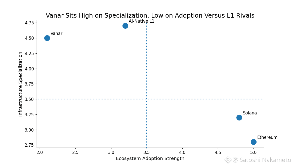 The competitive landscape doesn’t make that easier. Chains like Solana offer speed and massive communities. Ethereum offers gravity and liquidity. AI-focused platforms are popping up everywhere. Vanar’s Proof of Reputation system is interesting, but unproven at scale. If reputation scoring can be gamed, or if validator onboarding becomes politicized, trust erodes fast. And there’s always the technical risk. A sudden spike in AI workloads, combined with aggressive data compression, could push block execution past its comfort zone, delaying settlements and breaking the very reliability the chain is built around.