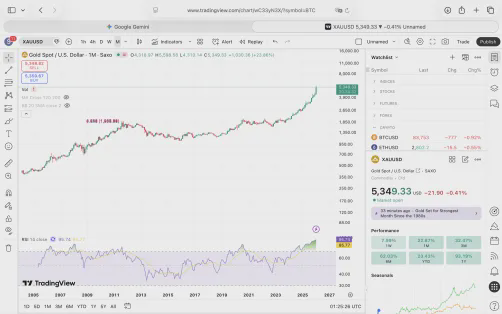 2. Questa ondata di crescita improvvisa e inclinata ha portato a un grave indicatore RSI di eccesso mensile. Fare riferimento all'immagine sottostante. È praticamente certo che l'oro sia arrivato alla parte superiore del ciclo di mercato rialzista.