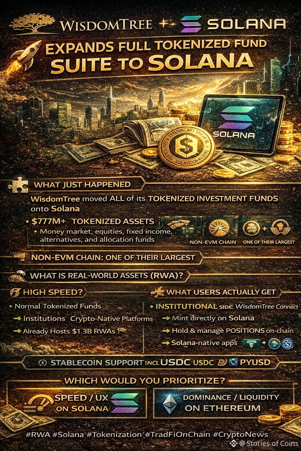 🚀 I’m Storiesofcoins — WisdomTree just moved its full tokenized fund lineup onto Solana, and this is a big signal that RWA is shifting from early experimentation to a distribution battle.