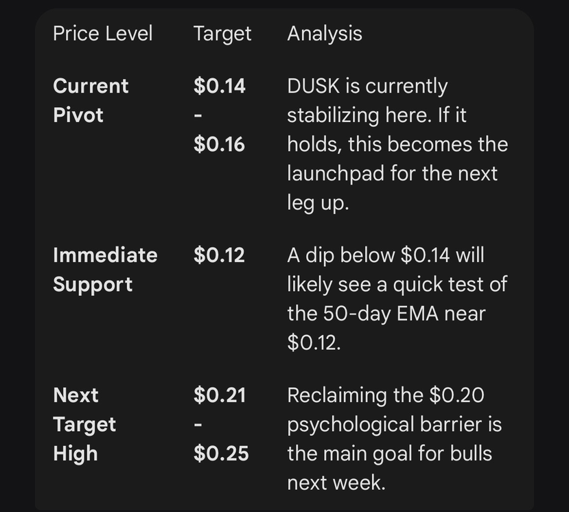 Consiglio per i trader: Guarda la coppia DUSK/BTC. Se DUSK continua a guadagnare valore rispetto a Bitcoin anche mentre Bitcoin è piatto, conferma che il "disaccoppiamento fondamentale" è reale.