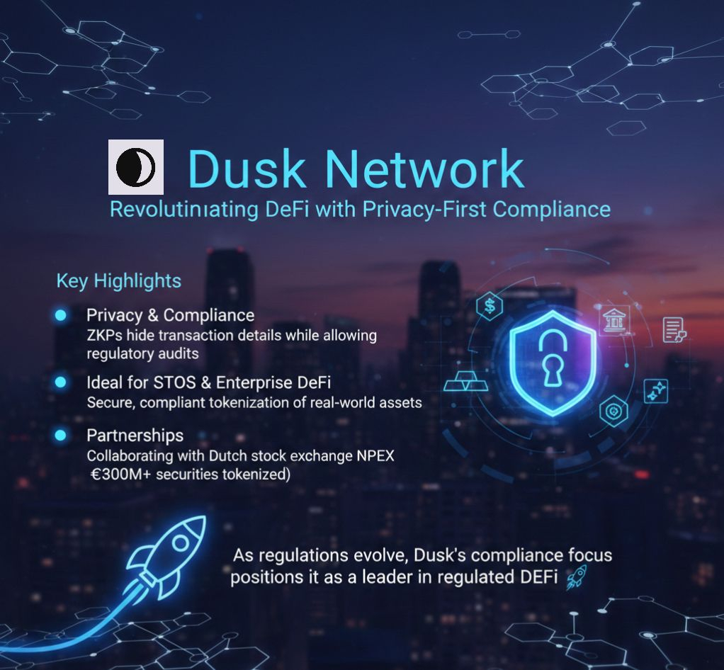 Il design modulare di Dusk e la compatibilità con l'EVM lo rendono versatile per sviluppatori e istituzioni. Con l'evolversi delle normative, il focus di conformità di Dusk lo posiziona come leader nel DeFi regolamentato 🚀.