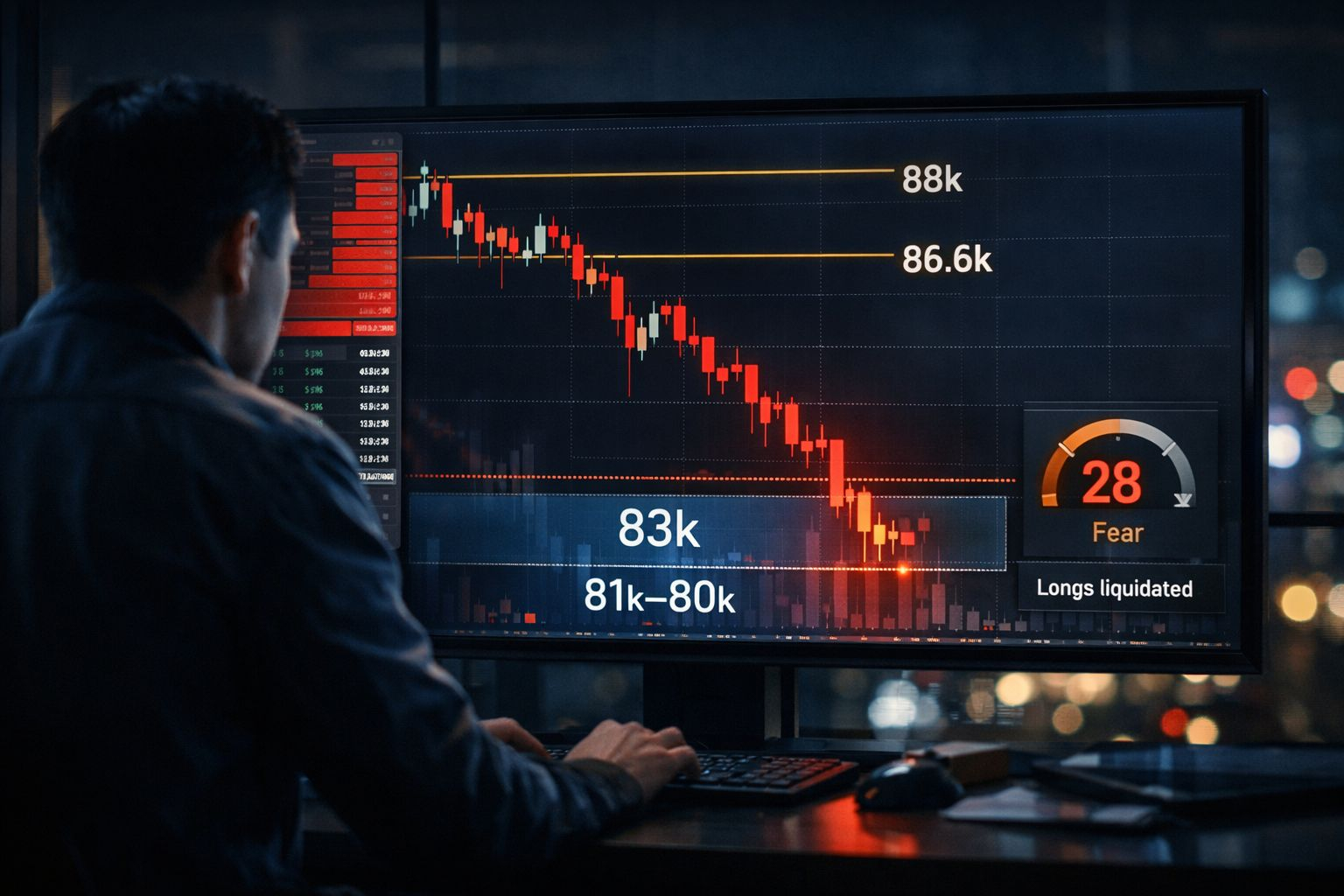 La mia lettura: siamo in fase correttiva e non c'è ancora una reversa confermata. Il long squeeze apre la porta a un rimbalzo di allevio, ma la zona 86.6K–88K è il filtro: se non si recupera e sostiene, il mercato può continuare in un range ribassista o persino cercare l'80K.