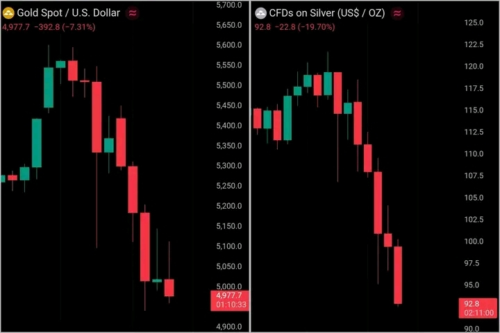 Oro e argento stanno vivendo una delle correzioni a breve termine più acute viste nella recente storia di mercato.