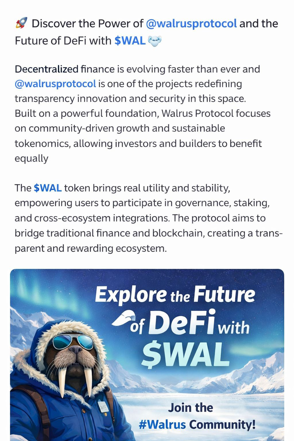 Unisciti alla #walrus comunità oggi e fai parte di un movimento che dà priorità all'equità, alla libertà e all'innovazione. Esplora la frontiera artica della DeFi con fiducia e lascia che $WAL guidi il tuo viaggio verso l'emancipazione finanziaria 🌊🐧