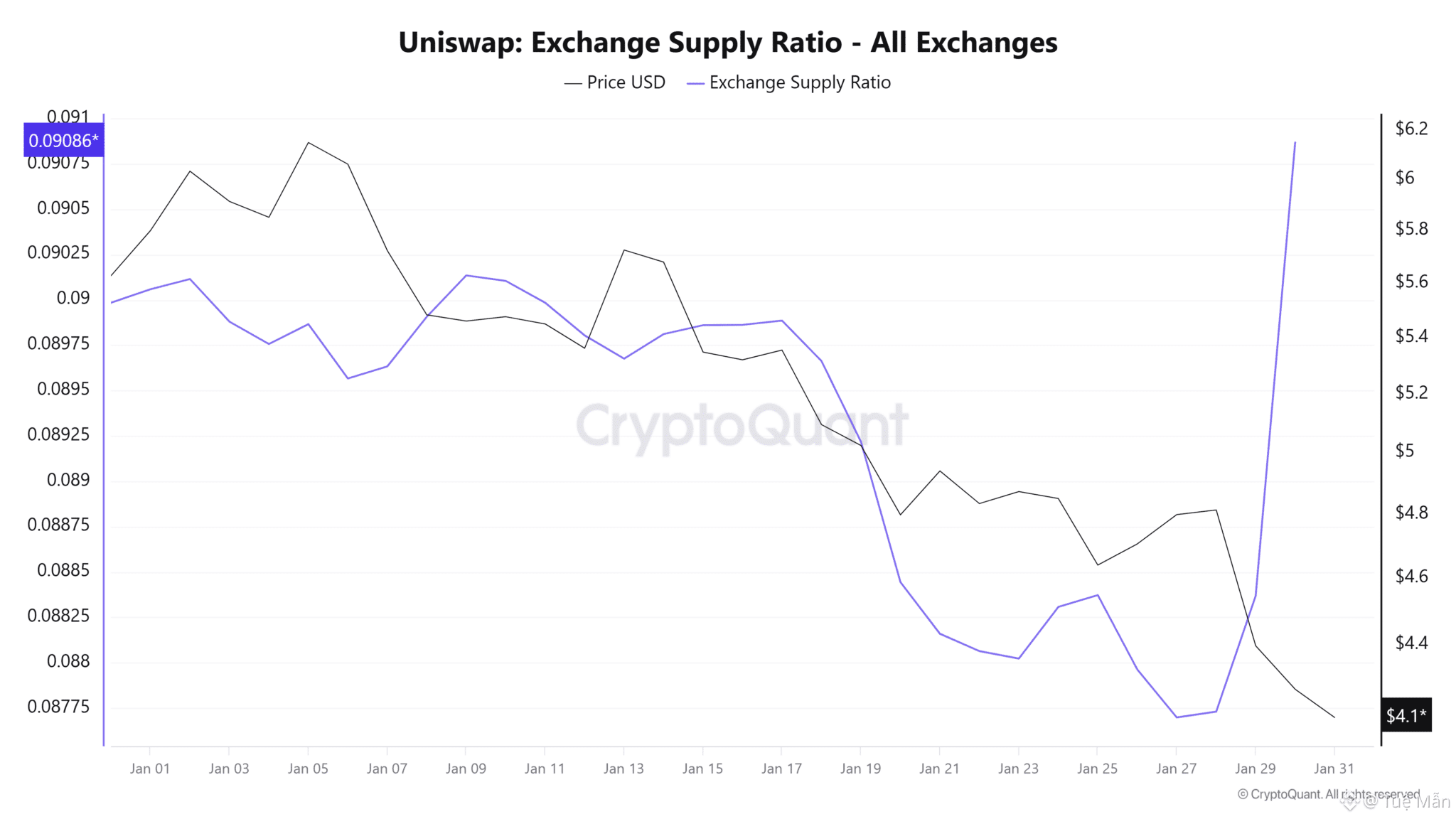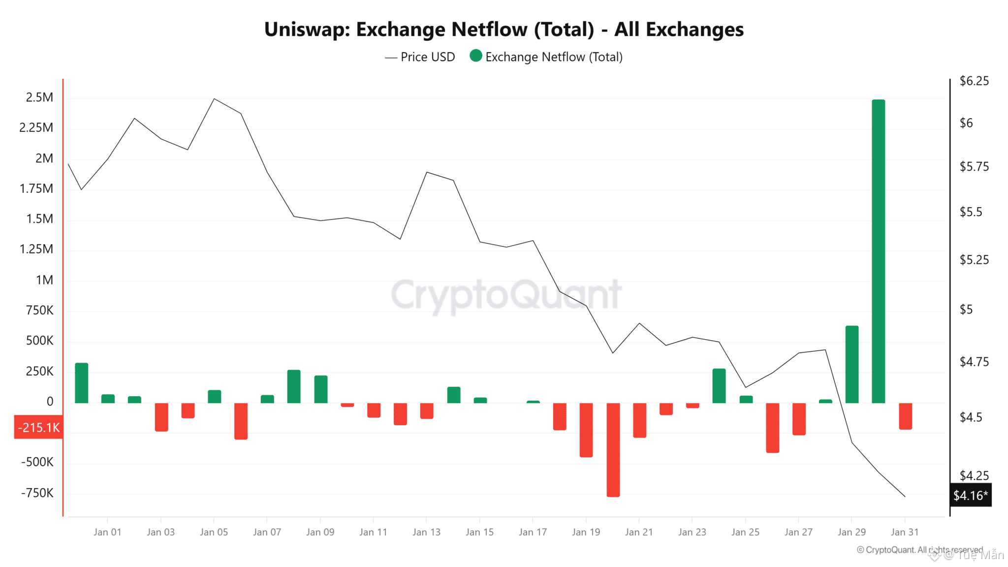 Không chỉ riêng giao dịch của cá voi, UNI còn chứng kiến hoạt động bán tháo đáng kể từ nhiều thành phần thị trường vào ngày 30/1.