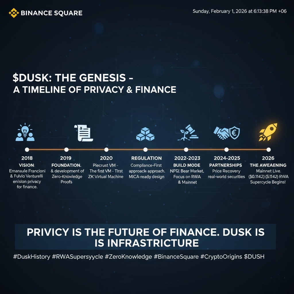 Dalle sue umili origini come whitepaper nel 2018 fino a diventare la spina dorsale del Superciclo RWA nel 2026, Dusk ha dimostrato che nel mondo della finanza, la privacy non è solo una caratteristica—è un requisito.