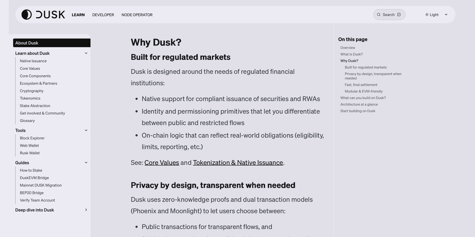 Fondata nel 2018, Dusk è una blockchain Layer 1 costruita specificamente per la finanza. Crea un ponte dove: