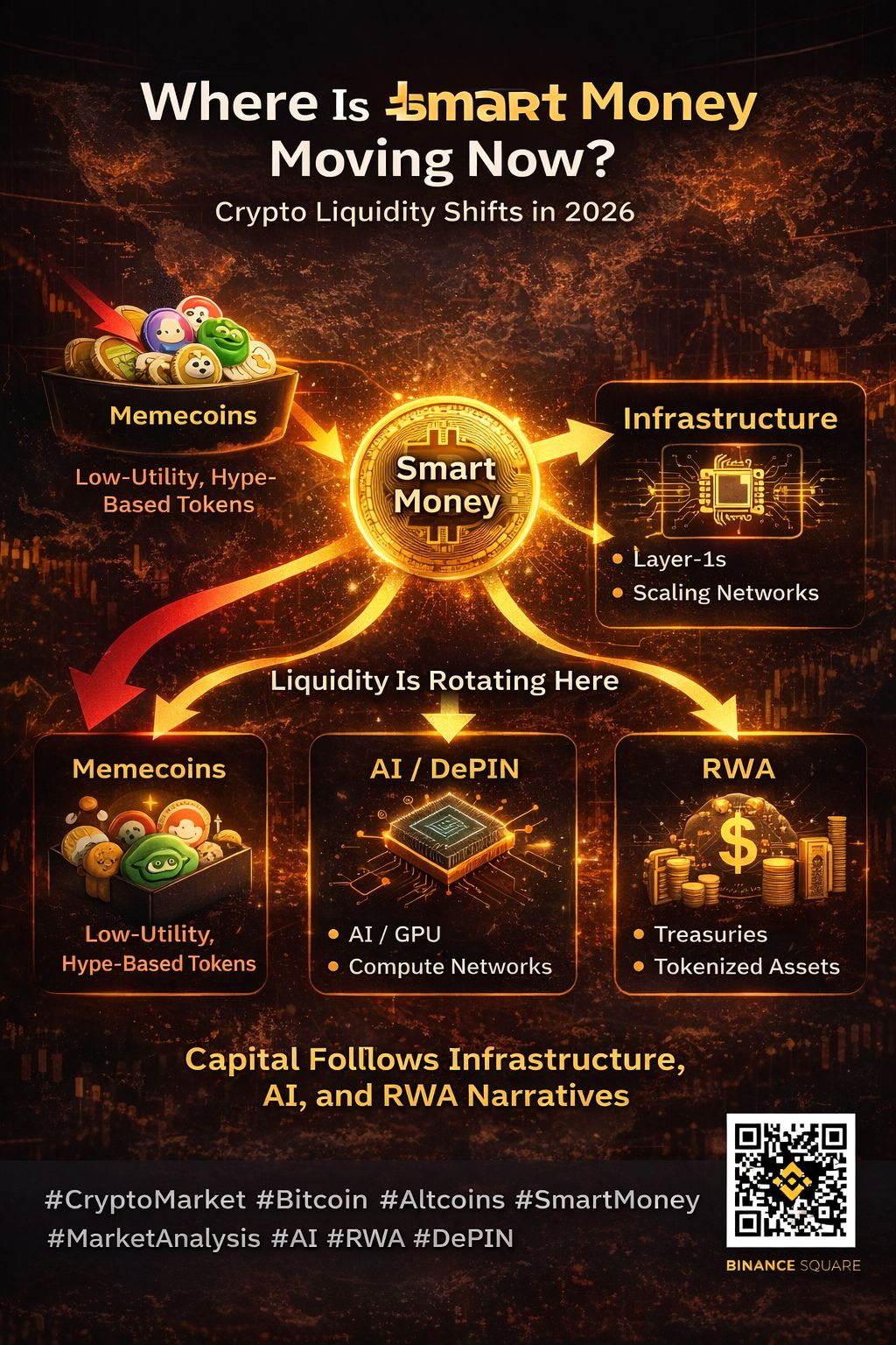 Ma sotto il rumore superficiale, i soldi intelligenti raramente vanno in panico — ruotano.
