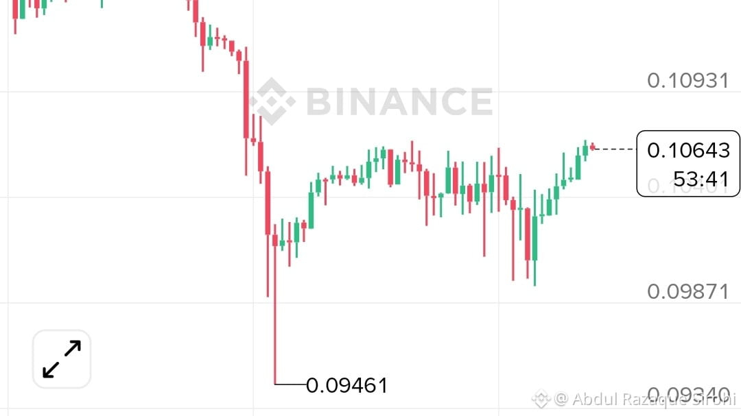 Il Supporto "Rimbalzo": Dopo un forte calo dal massimo locale di $0,1187, $DOGE ha trovato un pavimento a $0,0946. Quest'area ha agito come un trampolino, portando a una salita costante sopra il segno psicologico di $0,10.