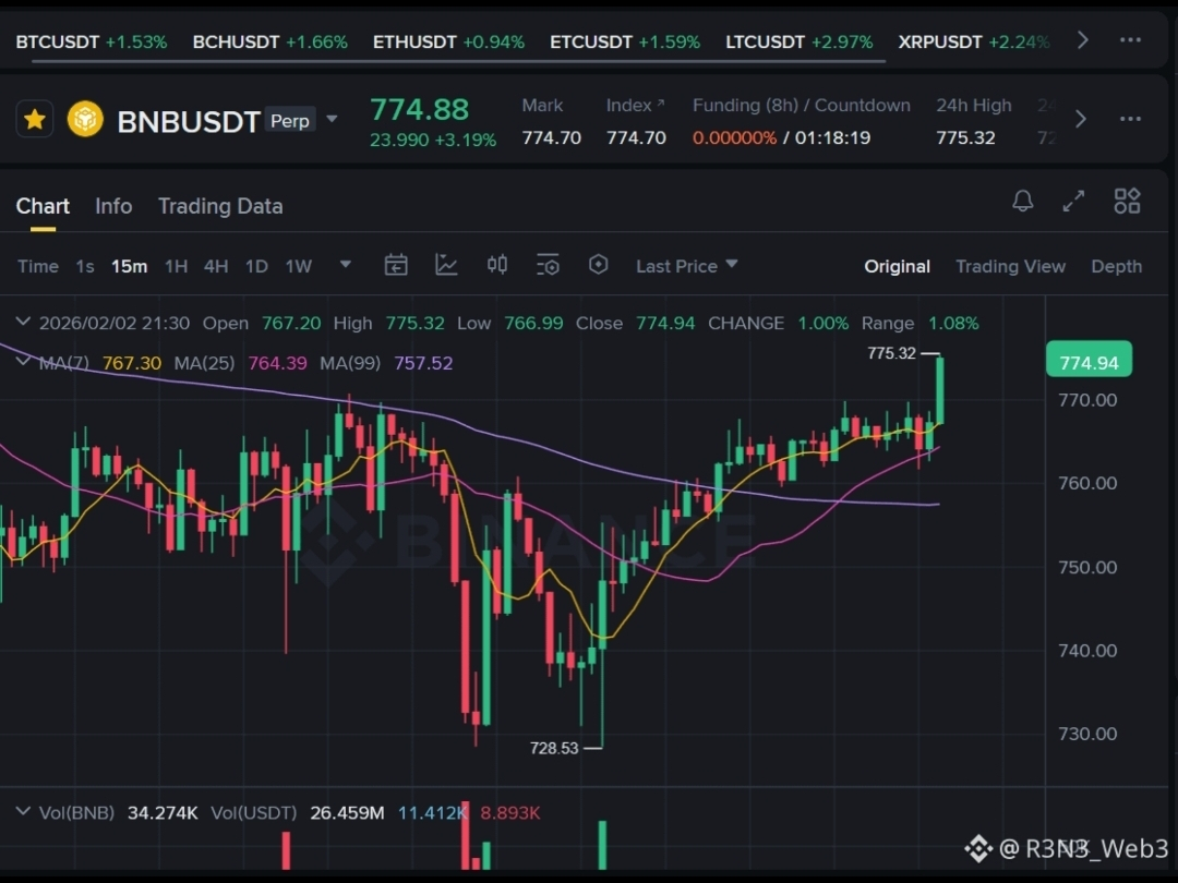 BNB si sta comportando meglio della maggior parte delle altcoin nonostante la debolezza del mercato generale. Il prezzo si sta consolidando intorno a questa zona, e gli acquirenti stanno iniziando a difendere l'area mentre BTC si stabilizza.