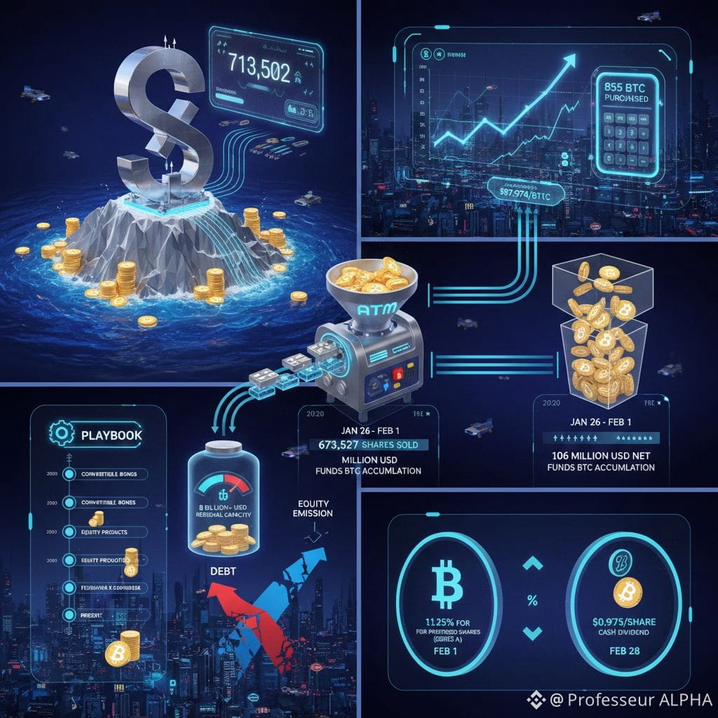 Entre le 26 janvier et le 1er février, l'entreprise a vendu 673 527 actions ordinaires, générant ainsi un revenu net de 106 millions de dollars. C’est cette vente d'actions qui finance directement l'accumulation de BTC.