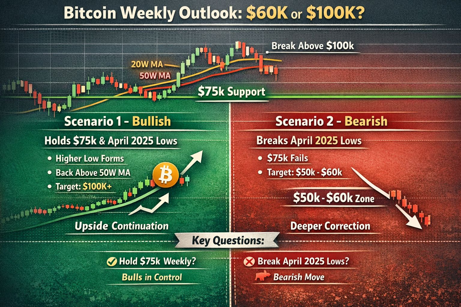 Le strutture cambiano, il ribasso si apre alla zona $50K–$60K.