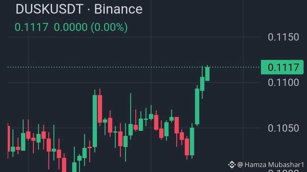 DUSK ha mostrato una forte spinta rialzista dopo essersi consolidato intorno alla zona di supporto $0.100 a $0.105. Il movimento impulsivo sul timeframe di 1H indica un nuovo interesse all'acquisto e un cambiamento nel momentum a breve termine. Il prezzo ora sta trattando vicino ai massimi locali, suggerendo un potenziale di continuazione se la forza si mantiene.