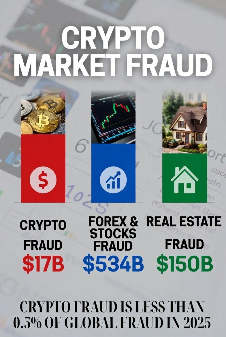 ✅ Il mercato delle criptovalute, che molti ritengono essere il più fraudolento, ha registrato solo $17 miliardi in frodi e furti nel 2025
