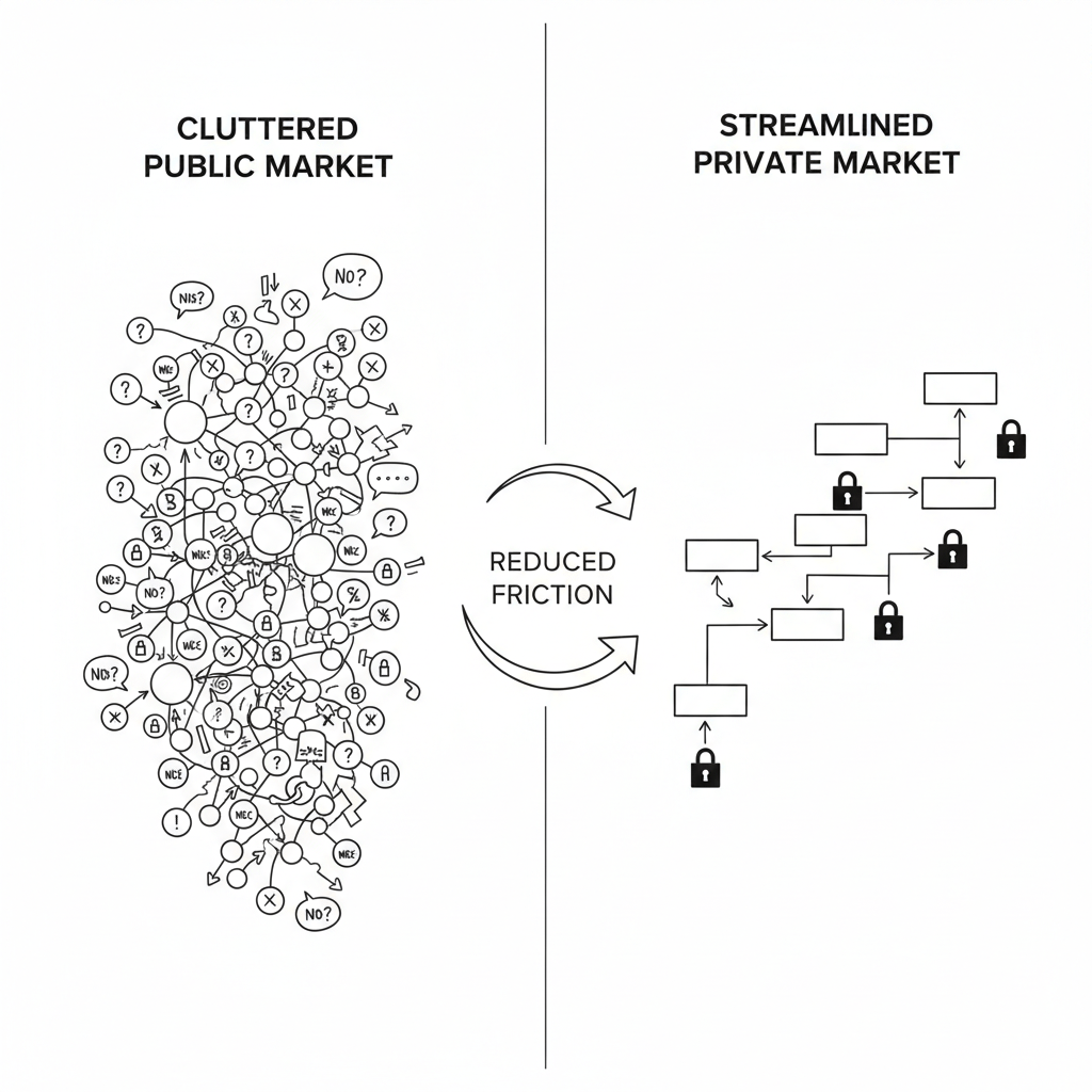 Questo ha effetti secondari. I prezzi diventano più stabili quando meno agenti rispondono a ombre piuttosto che a sostanza. Le transazioni avvengono più rapidamente quando gli agenti non si mostrano per un pubblico. I modelli di governance si livellano, poiché le proposte vengono valutate in base ai loro meriti piuttosto che a dinamiche di potere inferite.