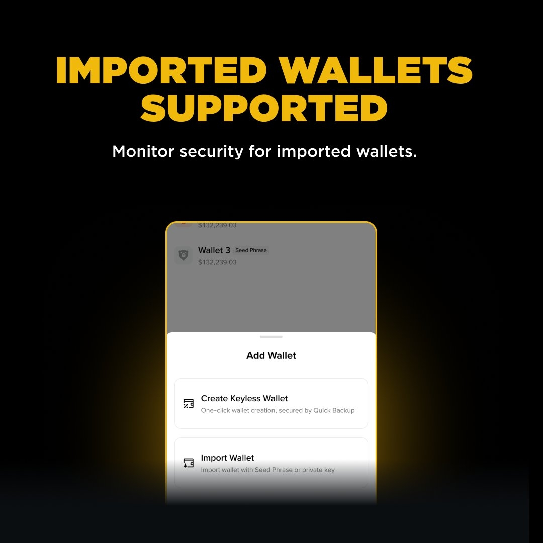 Controlla automaticamente i potenziali rischi e ti consente di gestire la sicurezza per portafogli senza chiave e importati in un'unica hub.