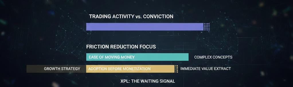 The central tension around XPL shows up in its token mechanics. Removing visible transaction costs changes how users behave, but it also changes how investors think. When fees are hidden or absorbed, usage can grow faster, but value capture becomes harder to trace. Traders sense this even if they cannot articulate it cleanly. You can see it in how rallies stall early. Price moves attract interest, but buyers hesitate to chase because the ownership loop does not yet feel closed.
