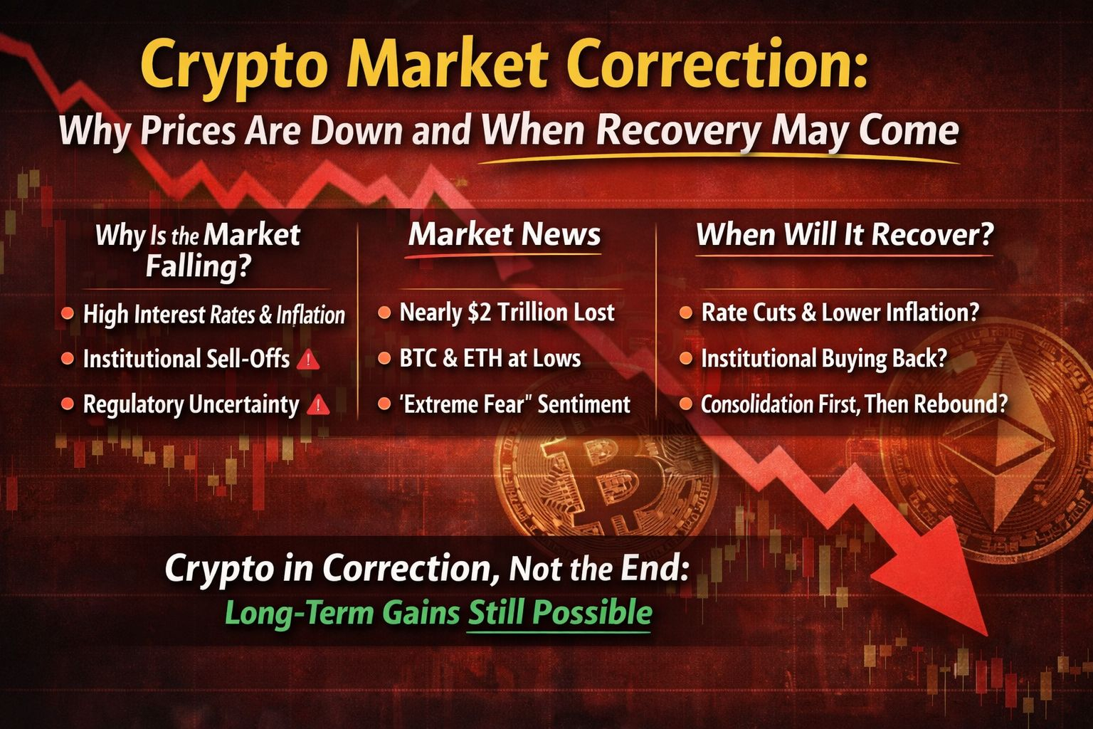 The correction is driven by several factors. High global interest rates have reduced investor appetite for risk assets like crypto. At the same time, large institutional investors have pulled money out of crypto ETFs, increasing selling pressure. Panic selling and massive liquidations in leveraged trades have further accelerated the decline. Ongoing regulatory uncertainty in the US and other regions has also weakened market confidence.