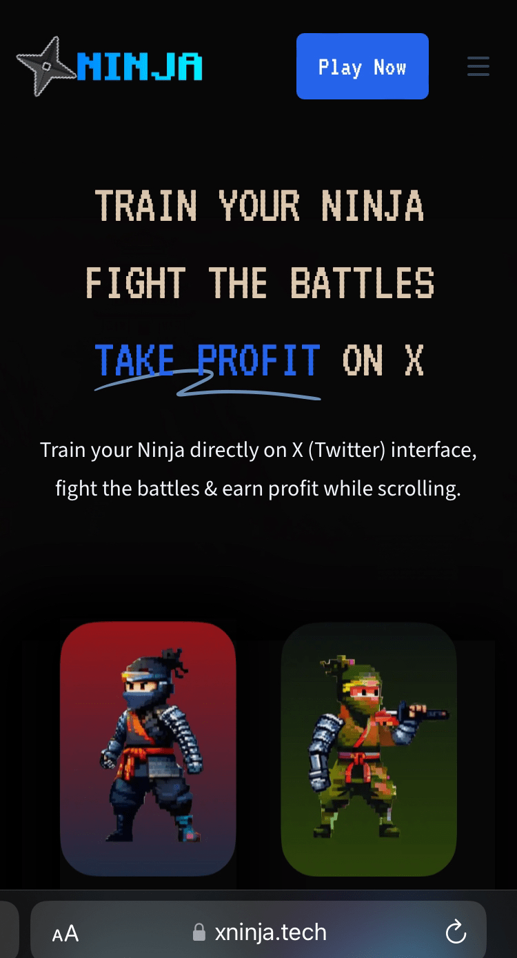 1. Vai su app.xninja.tech e verrai indirizzato alla home page! Ora fai clic su "Gioca ora" per iniziare!