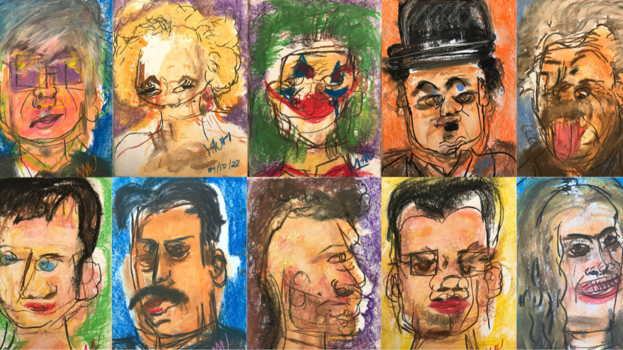 Uso i colori base, li mescolo, poi aggiungo ombre, poi luci, e infine delineamo le linee finali con il nero, questo dà al personaggio la forma finale, e con ogni volto che creo guadagno di più Con l'esperienza, anche le mie capacità sono migliorate , e ora utilizzo entrambe le mani per cercare di evidenziare le caratteristiche distintive dei personaggi, e la tavolozza dei colori di ciascun volto rimane coerente dall'inizio alla fine.