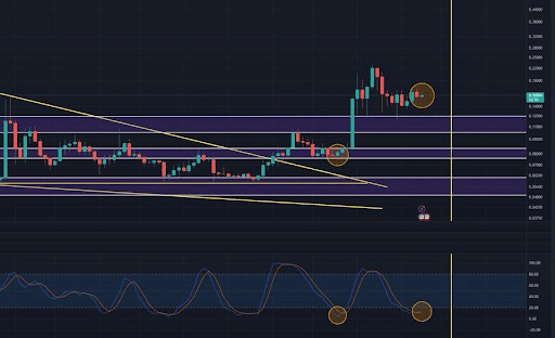 Kevin ha rivelato in un recente post su X che Dogecoin sta creando una "massiccia divergenza rialzista sullo Stoch RSI settimanale (Indice di Forza Relativa)". Ha inoltre notato che Dogecoin sta attualmente formando un minimo più alto e ha aggiunto che l'ultima volta che DOGE si è trovato a 0,08 dollari, è stato l'ultimo momento in cui ha superato il livello rialzista. In base a ciò, afferma che grandi movimenti sono in arrivo per la principale criptovaluta meme.