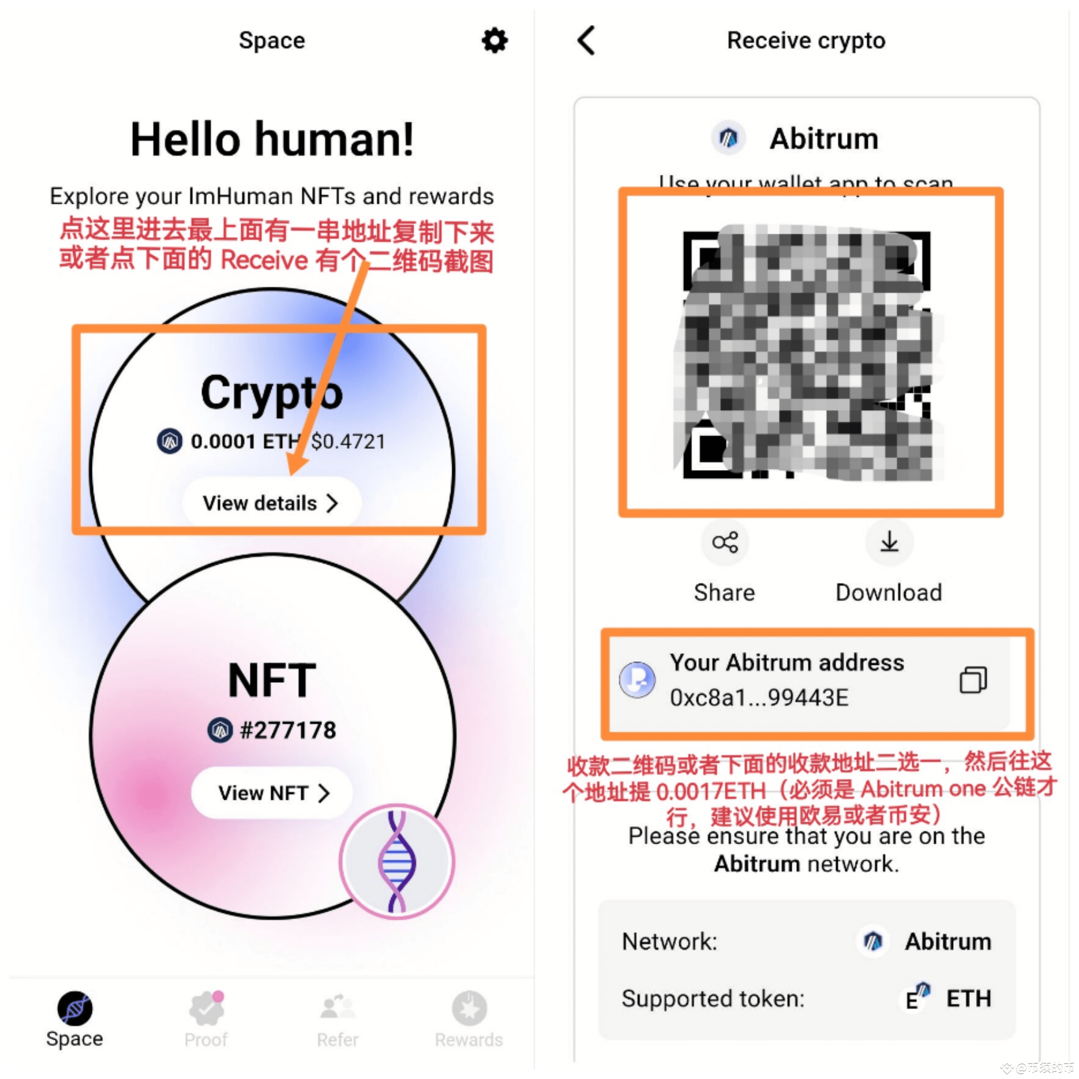 3.向小地球充值 0.0017ETH(看清楚主网)