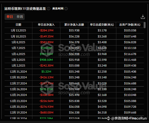 与此同时,现货比特币现货ETF在过去 12 个交易日里,有 7 天呈现净流出状态。虽然在1 月3 日和 6 日资金单日净流入接近 10 亿美元,但在8 日和 10 日出现逆转,共计流出 7.31 亿美元。