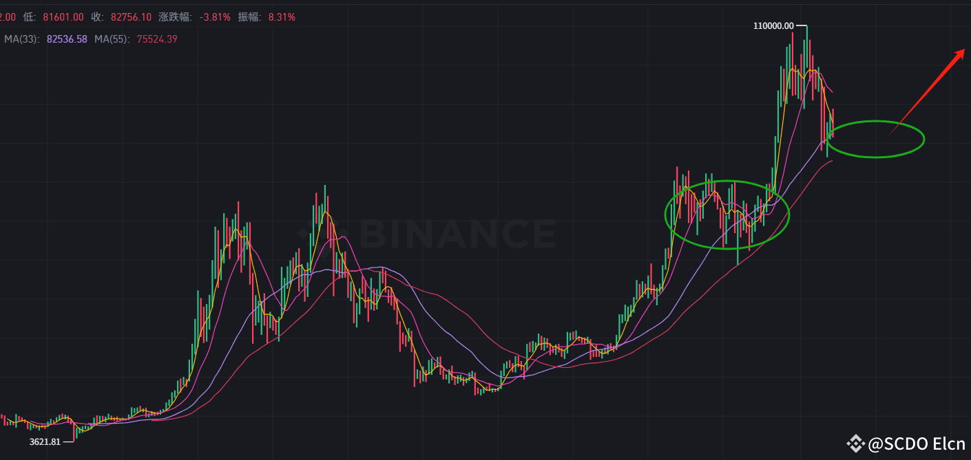 80,000 USDT左右: 前期双顶形态颈线区域,也是近期回调低点上方的重要撑。在技术上接近200日均线位置,对应多头防守线。若此位置守稳,显示多头依然掌控趋势。