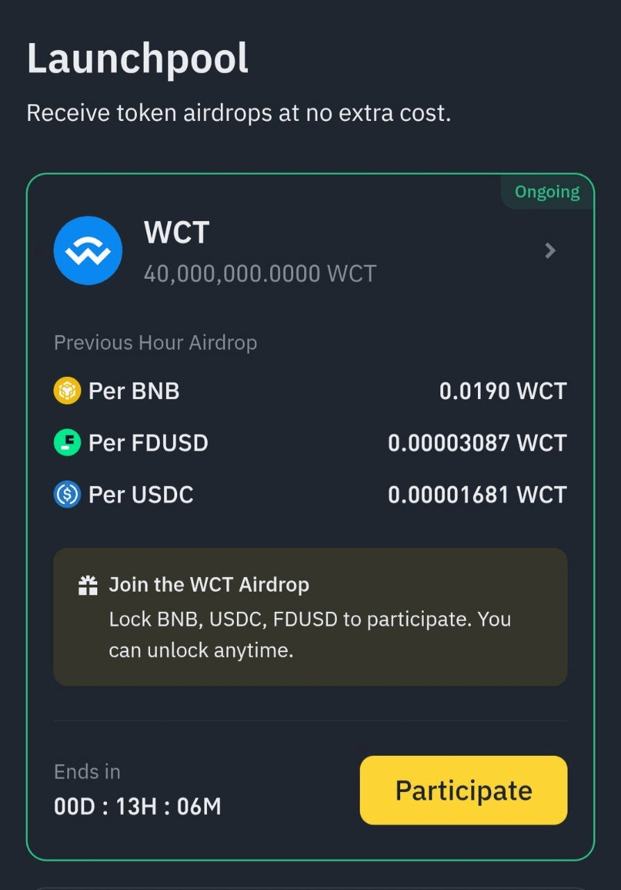 Binance will then list $WCT at 2025-04-15 11:00 (UTC)