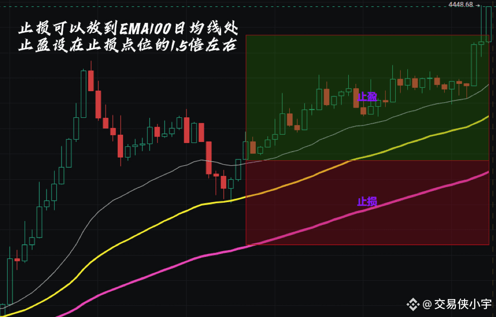 然后把止损设在100日均线附近(4387附近)止盈设置为止损点的1.5倍附近(4437附近),可以看到最后也是顺利止盈,并且在大非农的天地针前安然离场。
