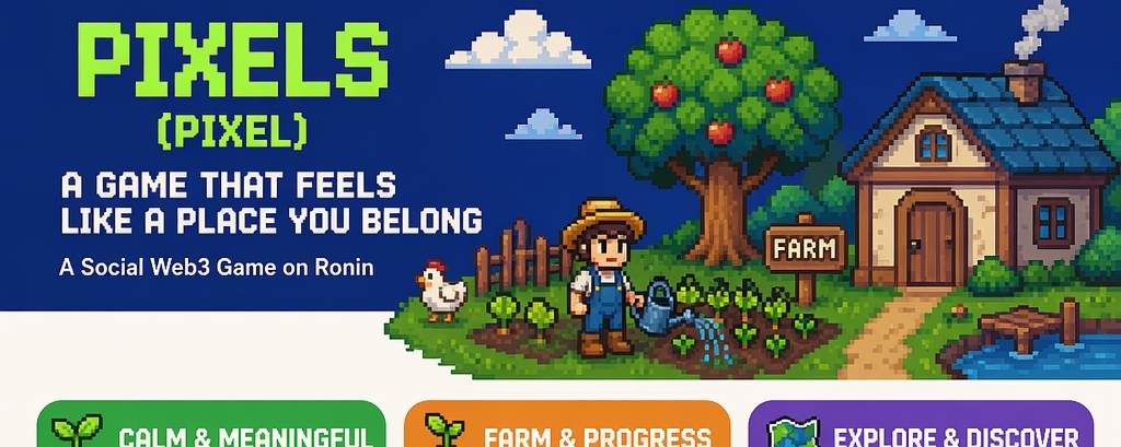 At its core, Pixels is a social Web3 game built on the Ronin Network, but describing it that way doesn’t really capture what it feels like to play. When you first enter its world, you’re not thinking about blockchain or tokens. You’re thinking about where to start—maybe planting your first crops, maybe wandering off to see what’s beyond the trees. It feels simple, but not empty. There’s a calm sense that everything you do, no matter how small, is part of something that builds over time.