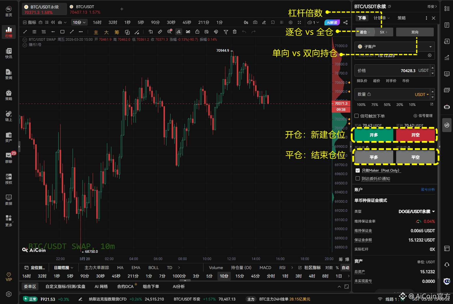 双向 :允许你同时持有一个币的“多单”和“空单”,通常用于对冲风险。