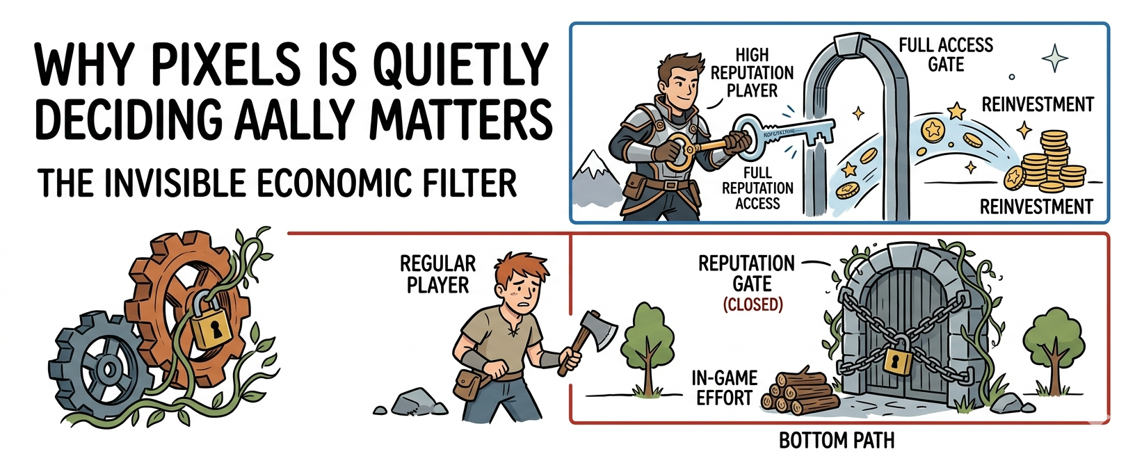 Pixels is doing something most GameFi projects never figure out: filtering who can actually convert activity into economic consequence, without making the game feel closed. It limits outflows without restricting participation. From the outside, it looks busy and open. From the inside, not all of that activity carries the same weight.