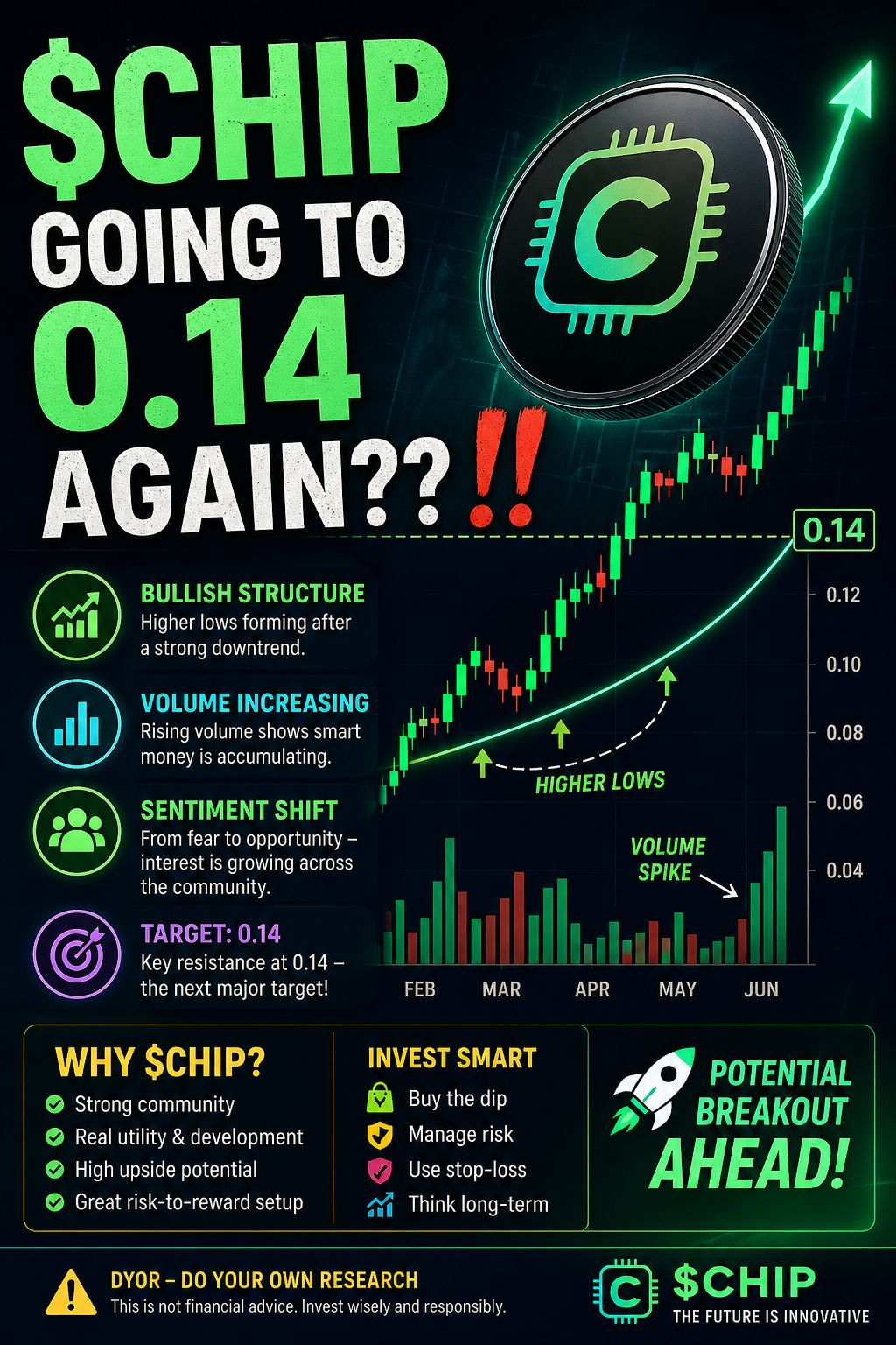 Based on current structure, volume, and sentiment, $CHIP appears to be positioning for a possible move back toward 0.14.