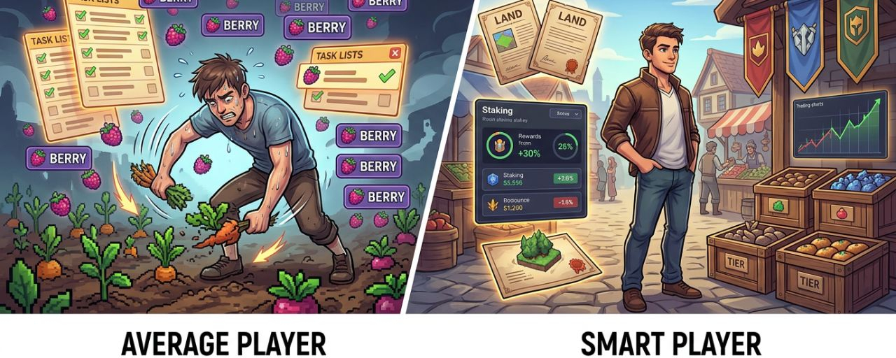 When most people think about winning in Pixels, they imagine a player clicking furiously on crops, completing every daily task, and maximizing their berry output per hour. They picture someone grinding relentlessly, following the latest optimization guide, and cashing out tokens as quickly as possible. This image is wrong. The smartest players in Pixels do not play this way at all. They understand something that the average player misses entirely: the game is not about grinding harder. It is about owning the right assets, building the right relationships, and positioning themselves ahead of market moves. The visible gameplay of farming and crafting is just the surface. The real game happens beneath it, and most players never even see it.