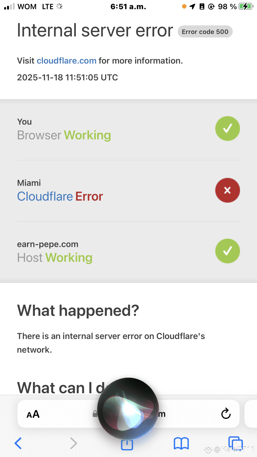 El mensaje que ves en la imagen ("Internal server error") y la nota de Cloudflare ("There is an internal server error on Cloudflare's network") confirman que el fallo se originó en la infraestructura de la red o el servidor que aloja el sitio earn-pepe.com, no en tu dispositivo o conexión.