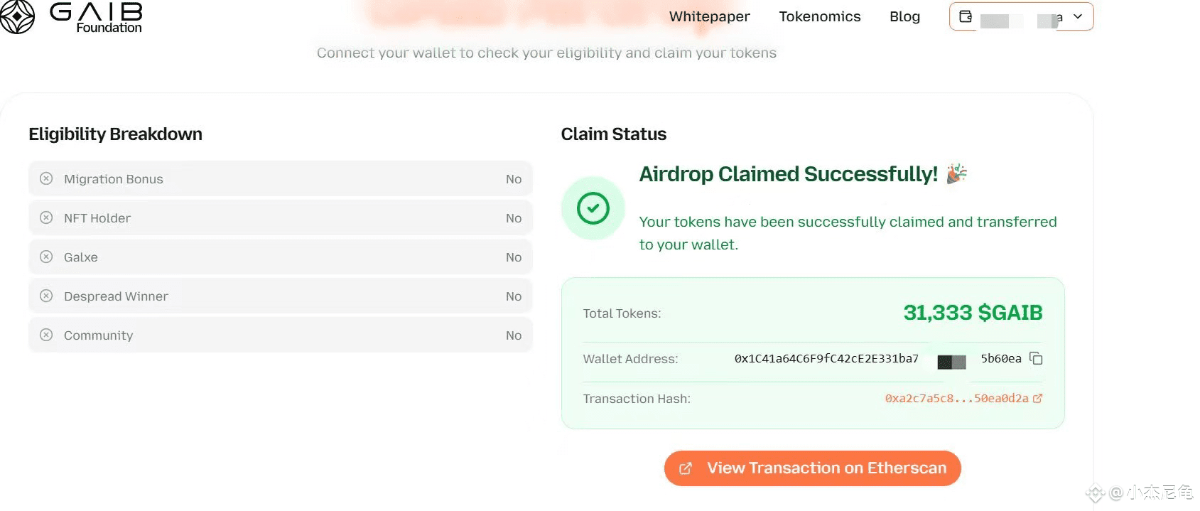 GAIB空投到账了,整整31333枚,2200u的究极大毛!关键是操作几乎无脑,小白都能做!废话不多说直接上奖励图: