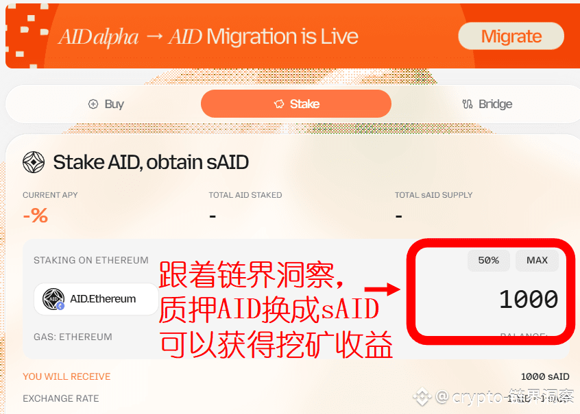 质押换sAID:把换到的AID进行质押,换成sAID,完成这一步,就可以安心等待活动到期领取空投奖励啦!