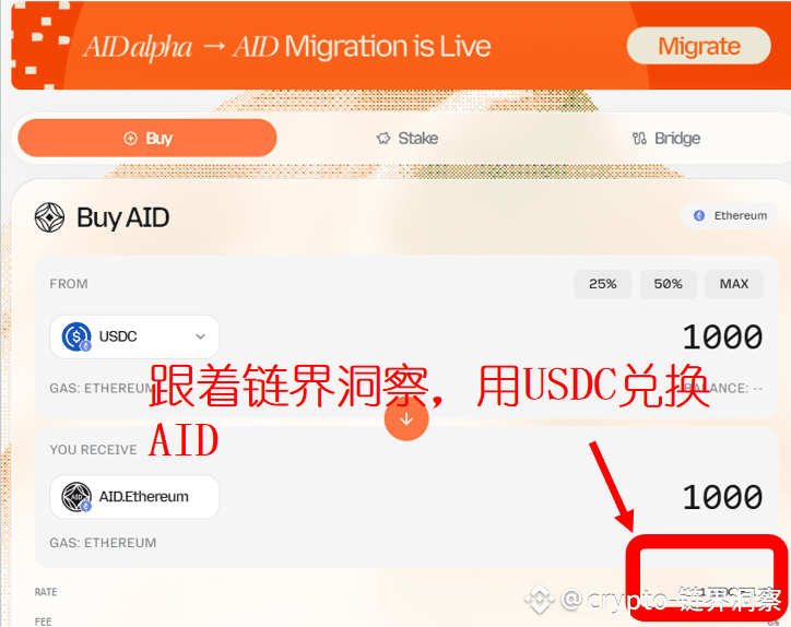兑换AID:使用钱包里的USDC,按照1:1的比例换成AID。