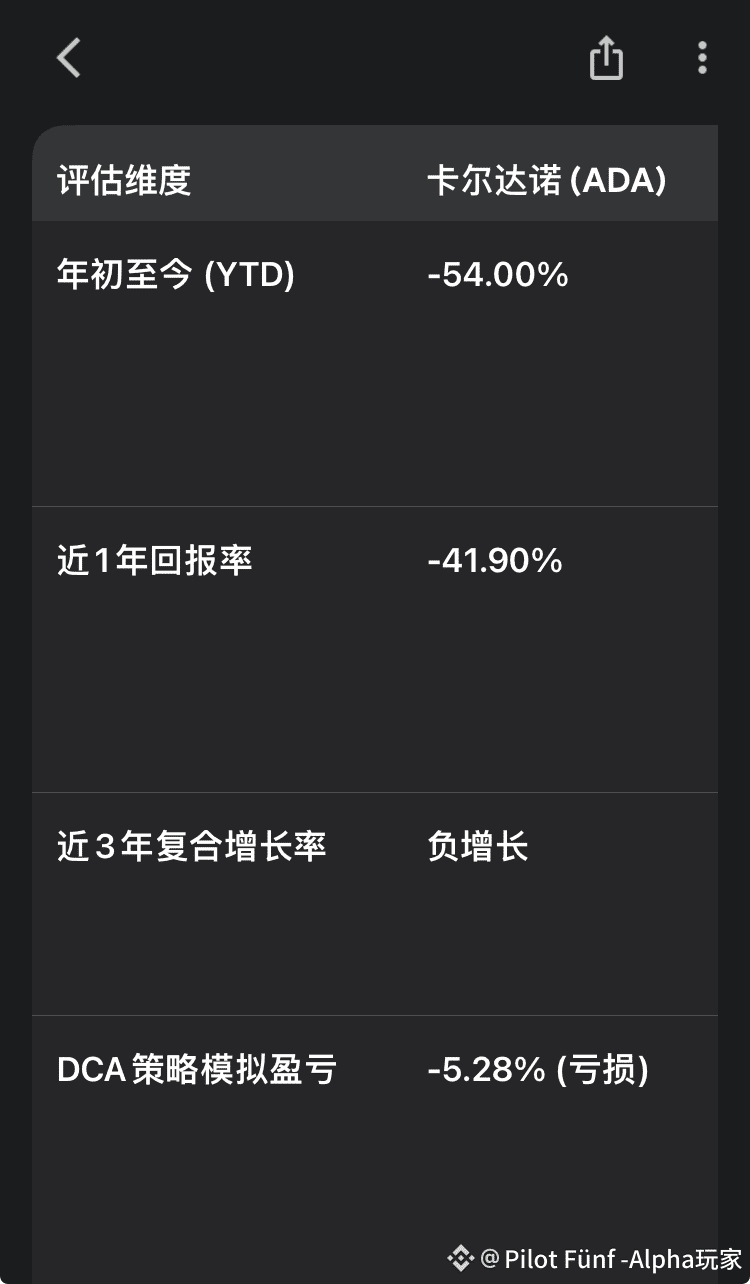 支持者常辩称ADA虽然涨得慢,但比SOL等高波动资产更“稳健”。然而,风险调整后收益指标(如夏普比率)并不支持这一观点。