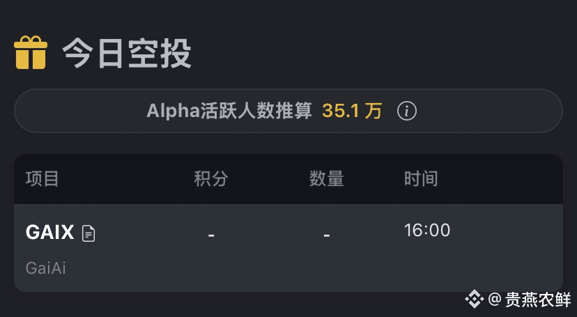 兄弟们早上好,今天是11月29日 币安AIpha GAIX 空投