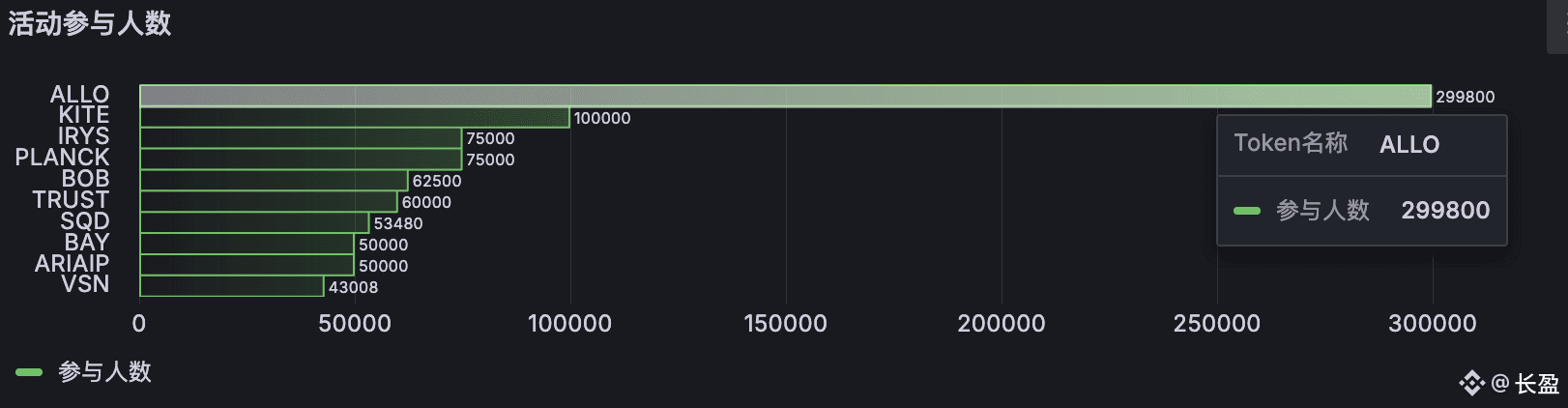 活动参与人数,从$ALLO 可以看出,本来可以是一个大毛,硬是被分成了近30万份,大毛变小毛, 可见币安无奈之举,实在是人太多了